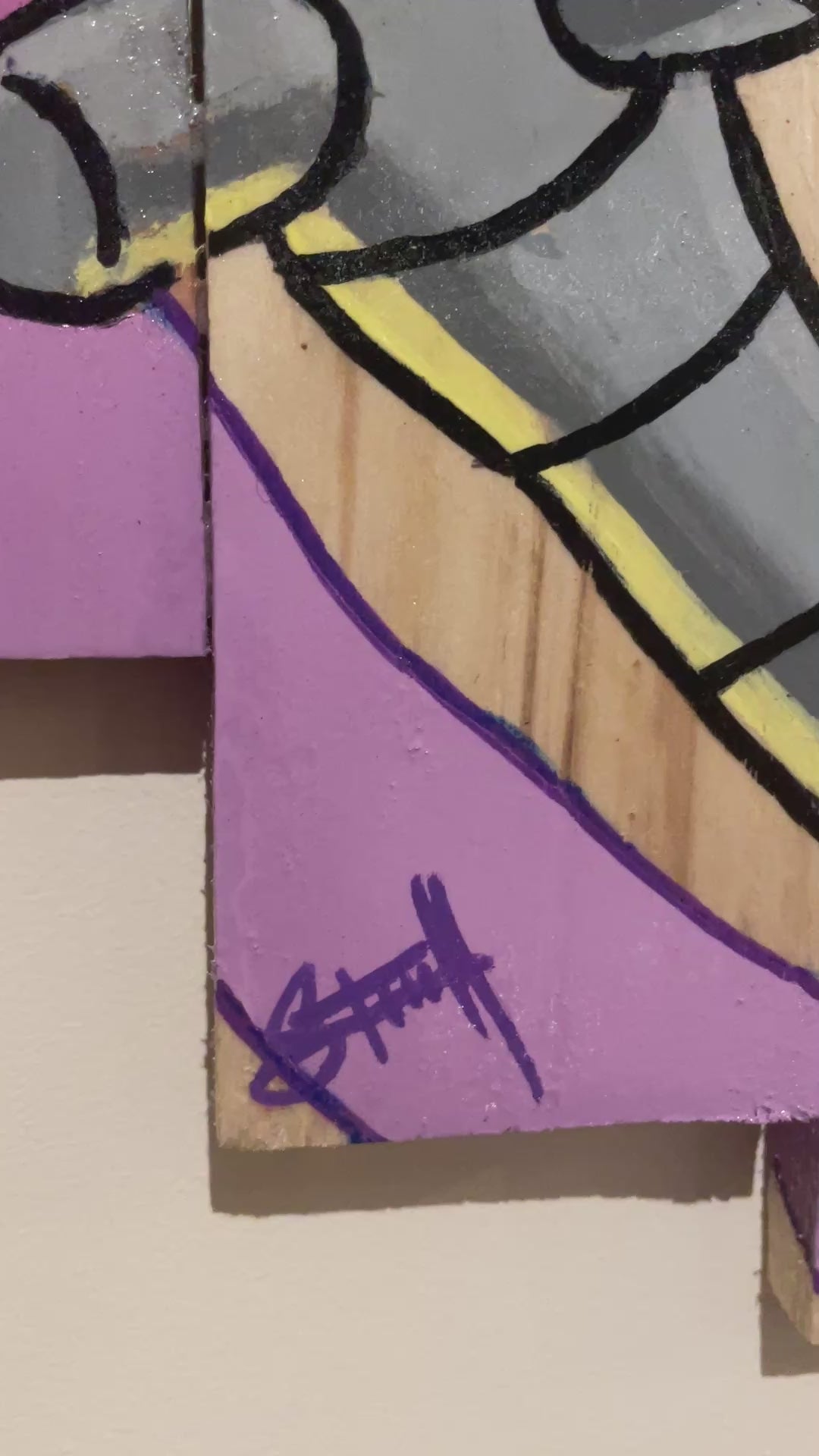Bender, l'adorable robot de Futurama, explose en couleurs acidulées sur cette création révolutionnaire ! Assemblé à partir de planches de palette brutes, le tableau fusionne street art et fine art. Peinture acrylique fluo, bombes de couleur, autocollants rétro et coups de feutres audacieux se conjuguent en une symphonie visuelle débordante d'énergie. Une célébration effrontée du pop art urbain, où le recyclage rencontre l'art contemporain.